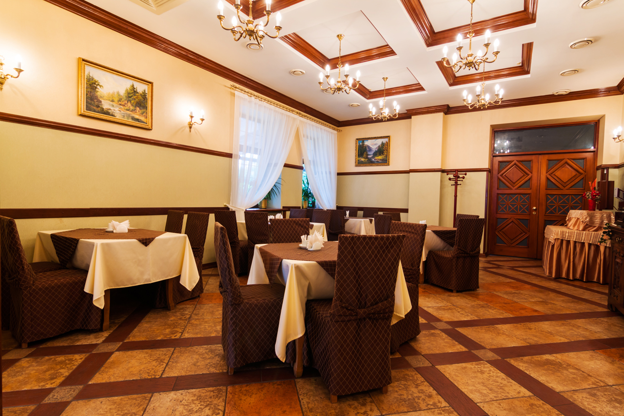 The original interior creates a sense of comfort, affordable prices and a rich menu will satisfy the tastes of each guest, and professional staff will do everything to make you relaxed and memorable ,for you to come back again.There are menu and playground even for the youngest visitors ,where they can spend a fun . Very beautiful terrace with fountain will add a good mood.You can enjoy a live music from Friday to Sunday in our restaurant.Each day from 12:00 to 15:00 we invite you to tasty lunches. Our small restaurant is the perfect place for a romantic dinner, small weddings, family dinners, and various celebrations, banquets, receptions and business negotiations. There in our restaurant is always delicious and cozy and here is a pleasant atmosphere.For customers there is a system of discounts. Always glad to see you among our guests.
